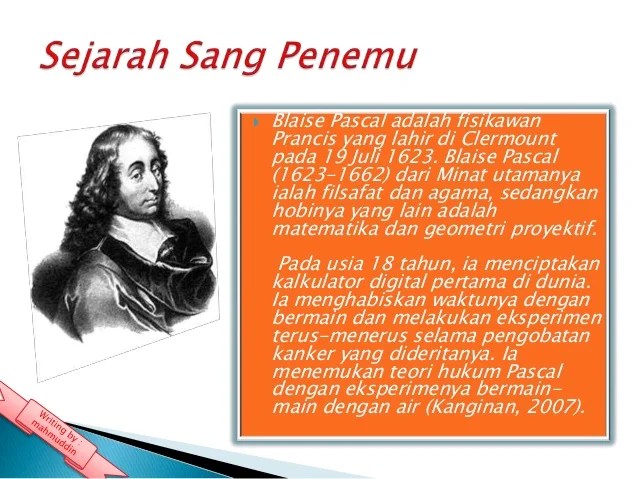 Penemuan ini memverifikasi hipotesis bahwa fisikawan italia . Hukum pascal dinyatakan oleh seorang ahli matematika dan fisika berkembangsaan. Blaise pascal menemukan kalkulator mekanik pertama pada tahun 1642. Le pari atau pertaruhan adalah argumen pascal lainnya yang terkenal. Blaise pascal adalah sosok matematikawan dan fisikawan dunia yang terkenal dengan hukum pascal miliknya.